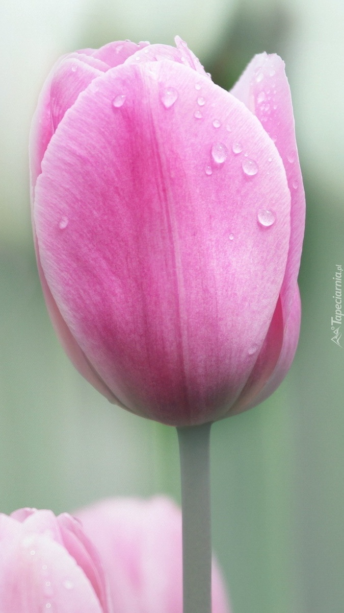 Edytor tapety: Różowy tulipan z kroplami rosy