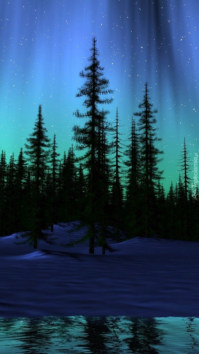 Edytor tapety: Zorza polarna nad lasem