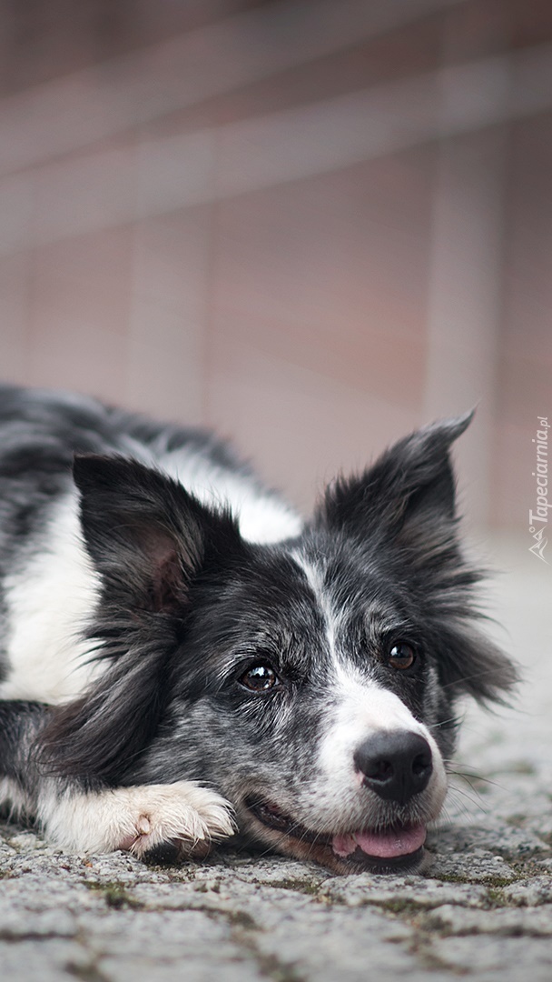 Edytor tapety: Border collie leżący na bruku