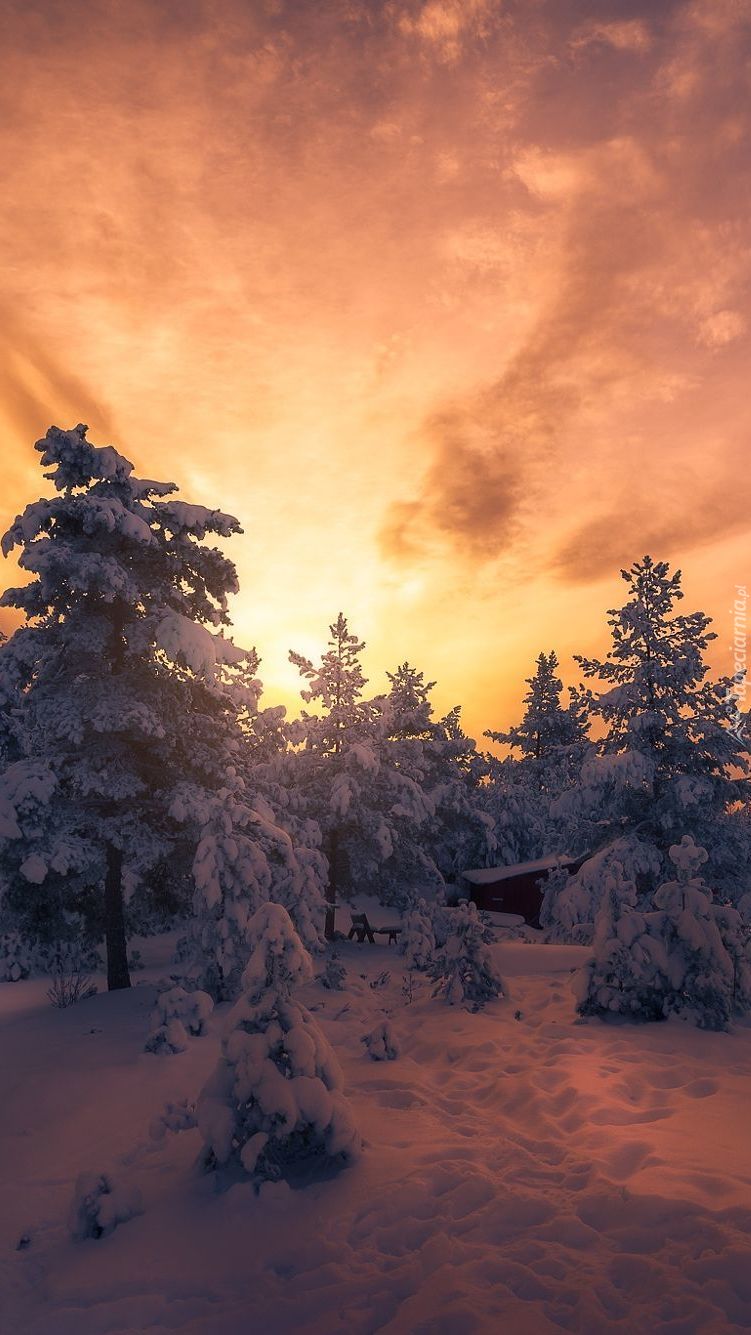 Edytor tapety: Drzewa o zachodzie słońca