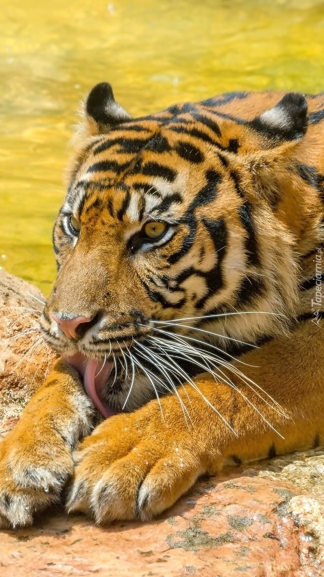 Edytor tapety: Tygrys liżący łapę