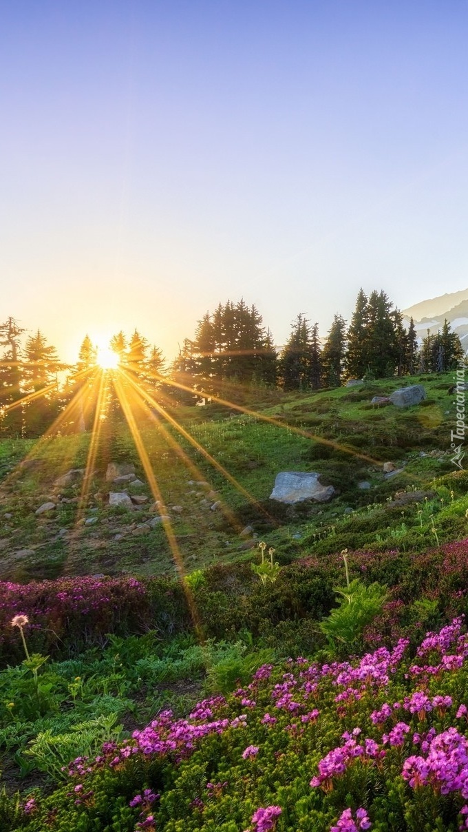 Edytor tapety: Promienie słoneczne padające na łąkę