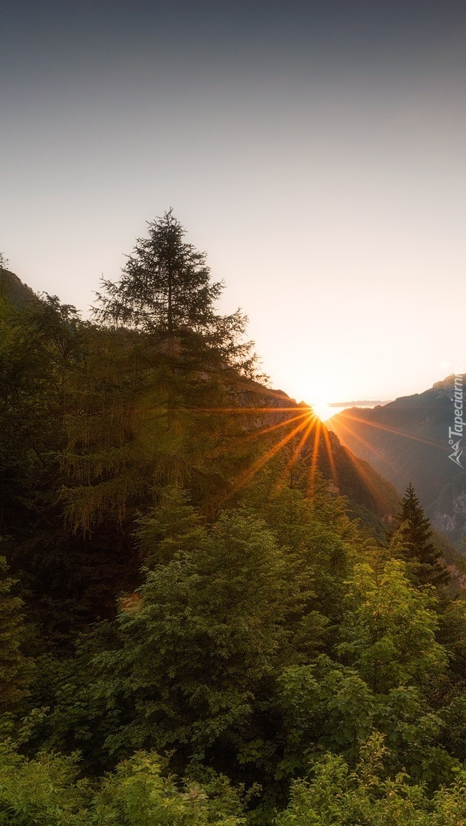 Edytor tapety: Słońce nad górami o poranku
