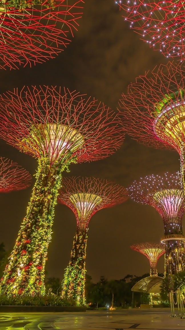 Edytor tapety: Ogród oświetlony nocą w Singapurze