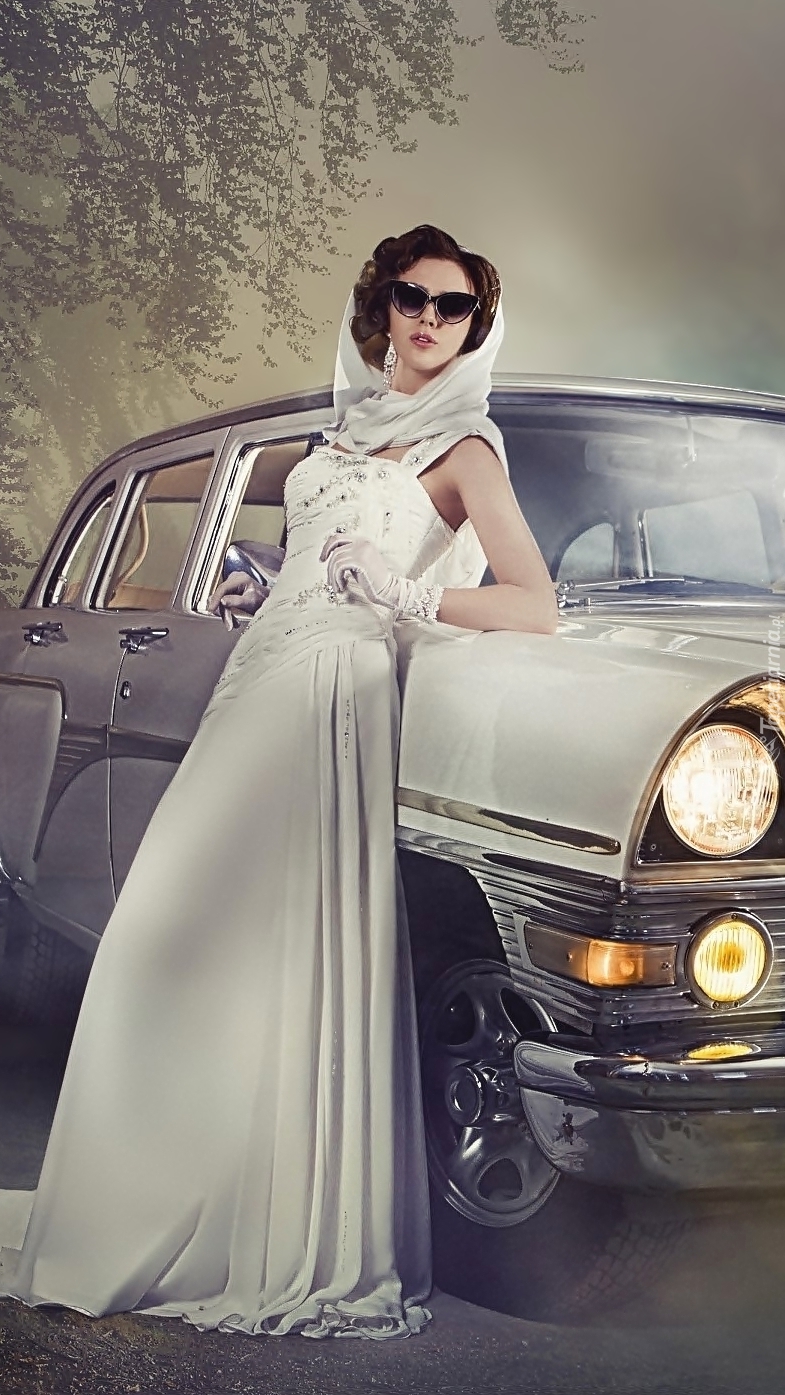 Edytor tapety: Kobieta oparta o samochód