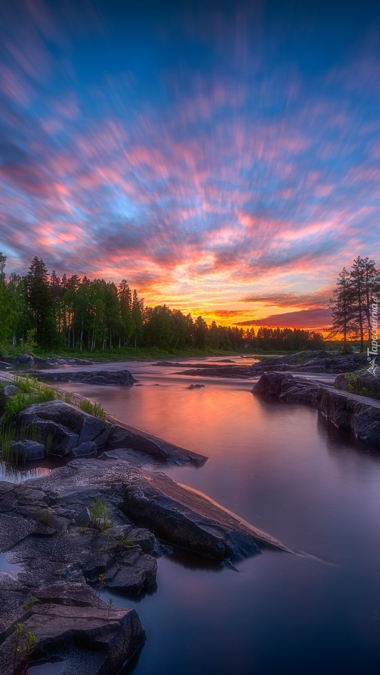 Edytor tapety: Zachód słońca nad rzeką Kiiminkijoki