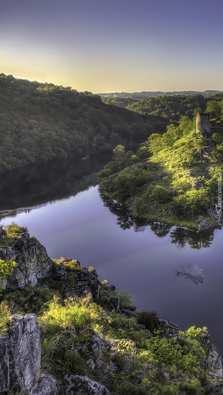 Edytor tapety: Wzgórza zielone nad jeziorem