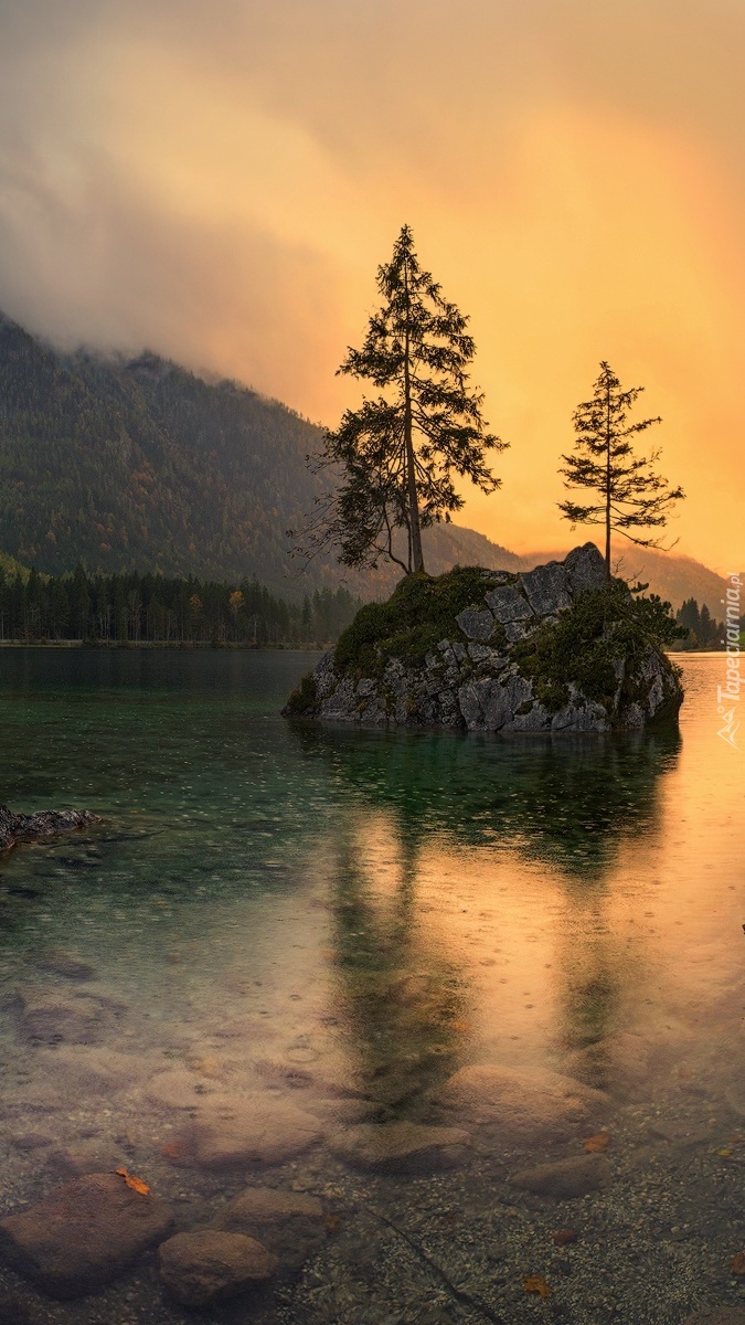 Edytor tapety: Skała na środku jeziora Hintersee