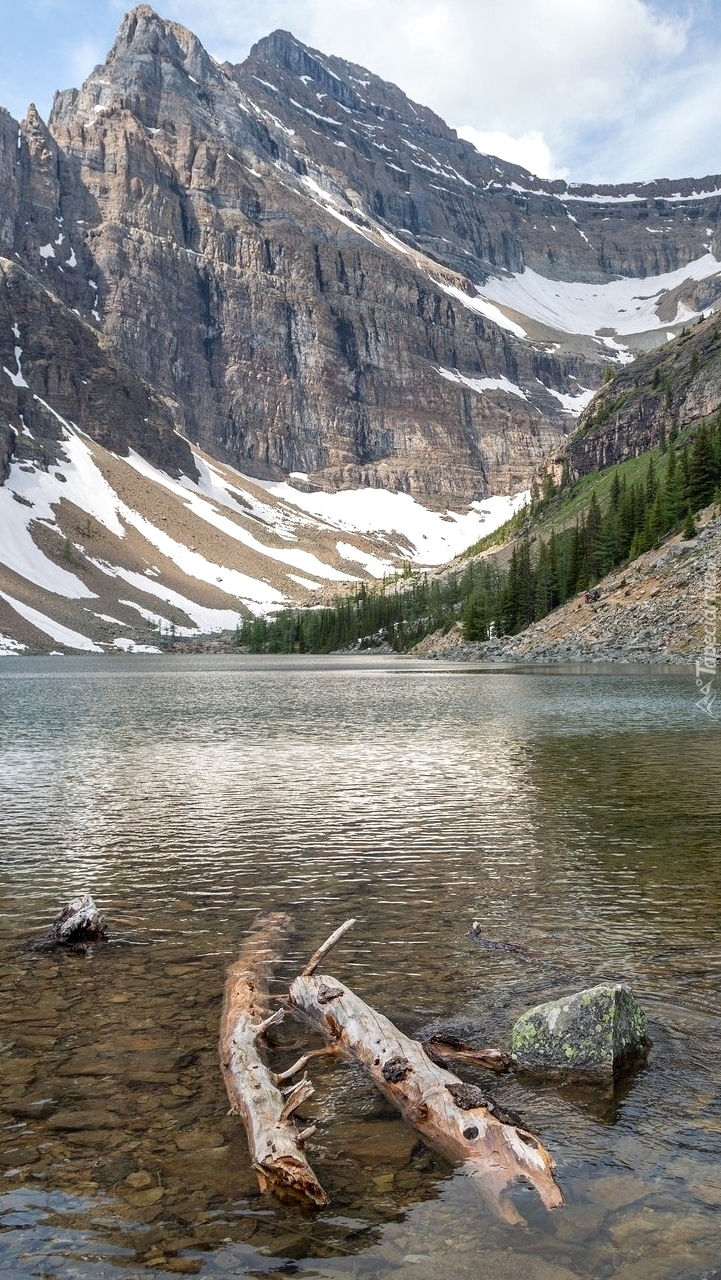 Edytor tapety: Ośnieżone góry nad jeziorem Agnes