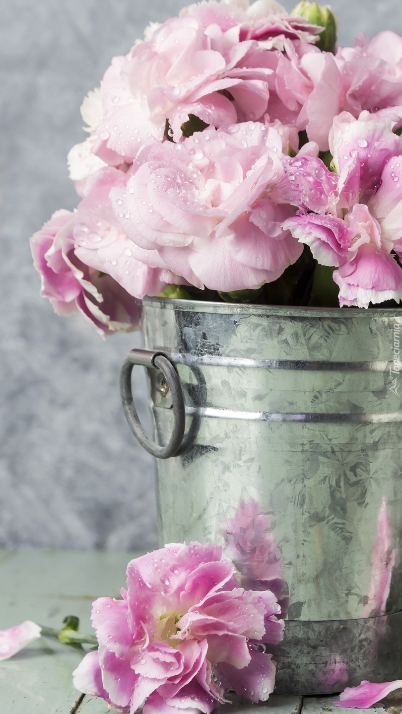Edytor tapety: Goździki Szabo w wiaderku