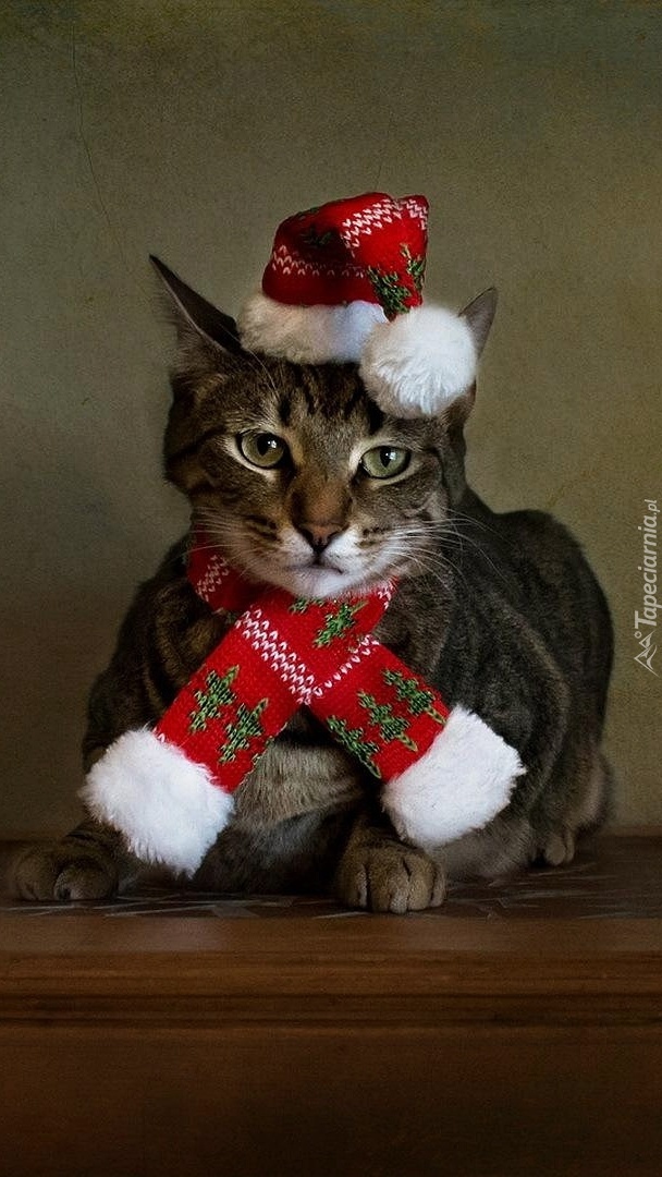 Edytor tapety: Kot w świątecznym ubranku