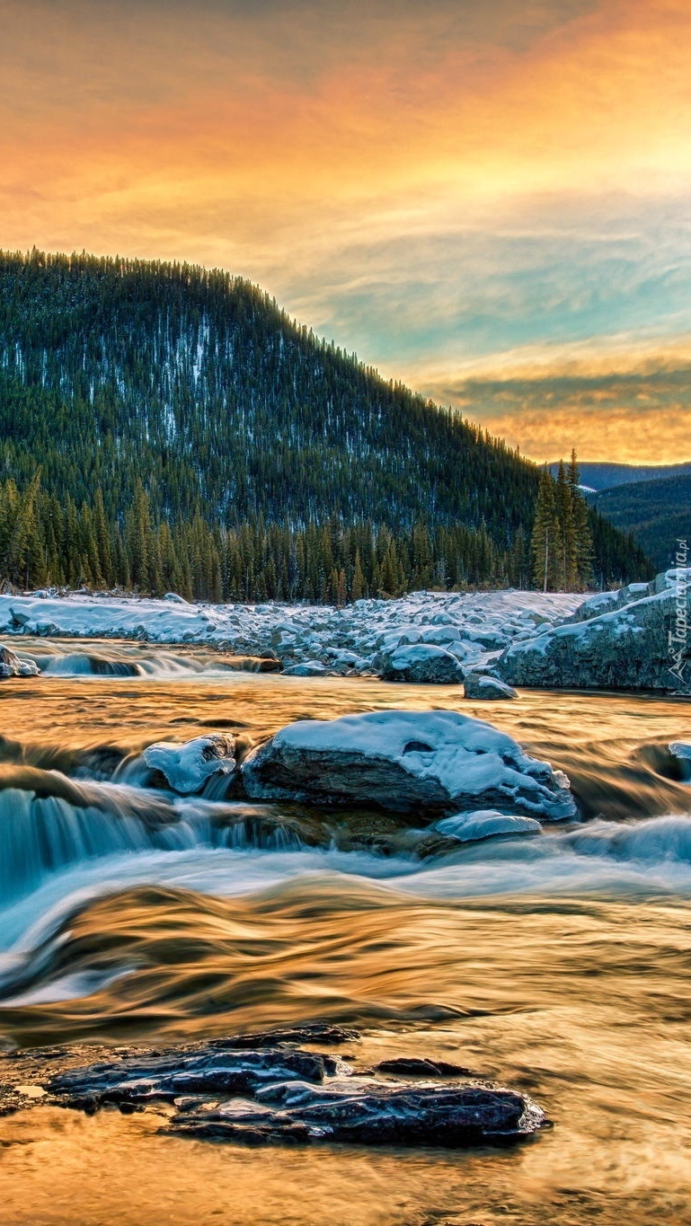 Edytor tapety: Rzeka zimą w górach