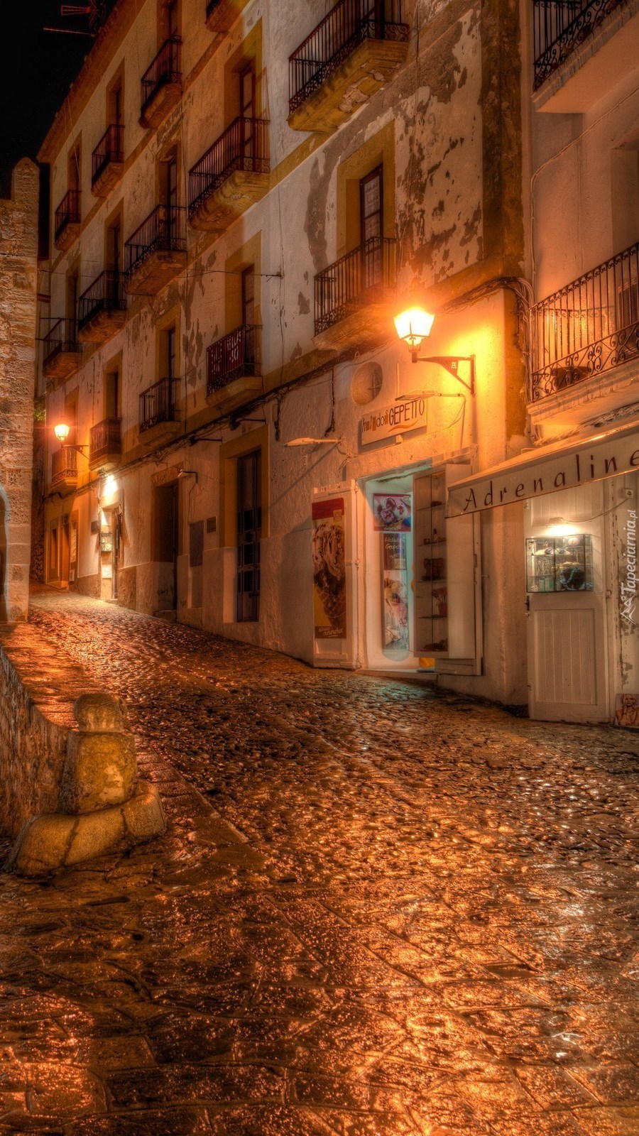 Edytor tapety: Oświetlona uliczka w Ibizie