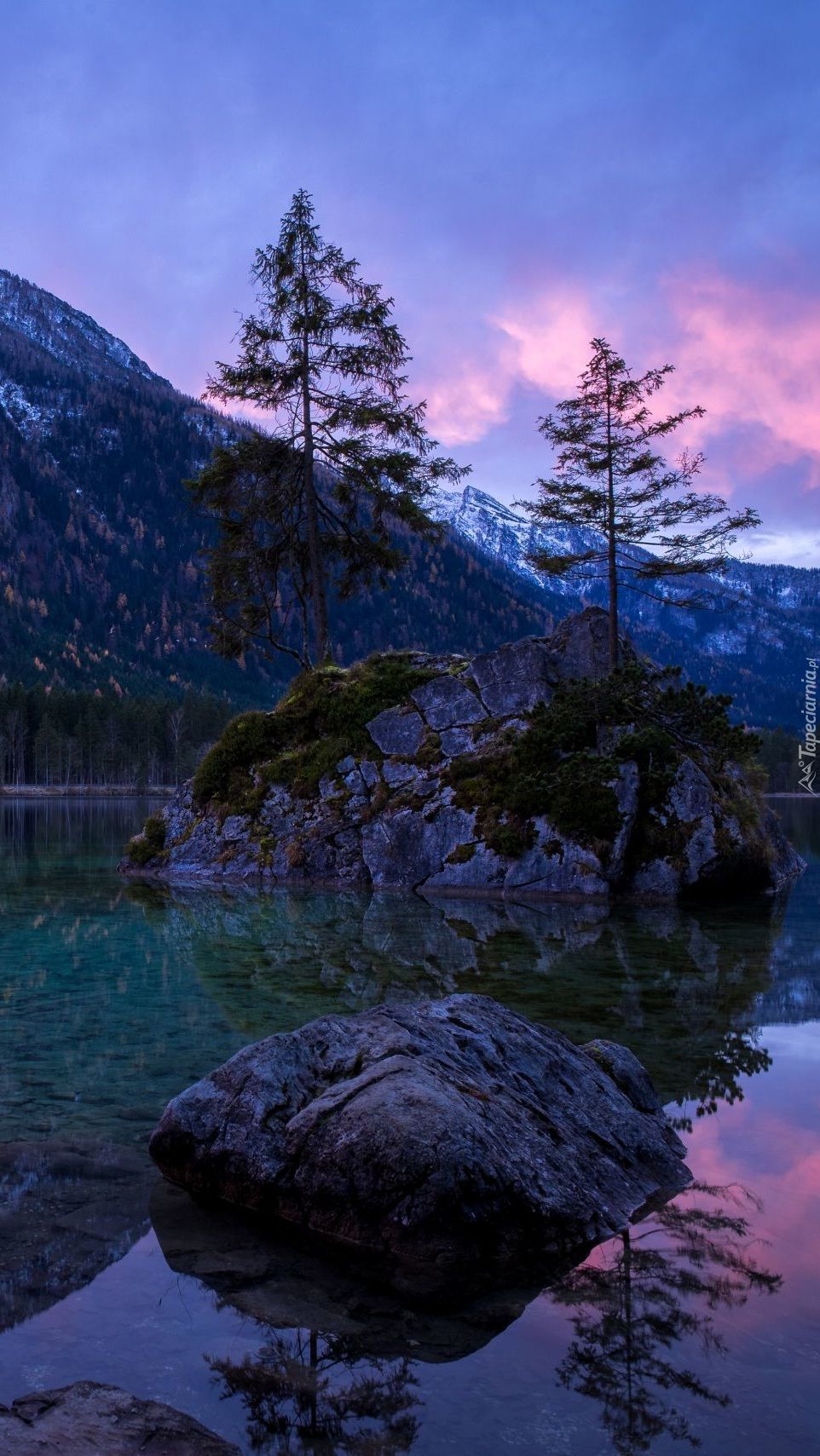 Edytor tapety: Dwa drzewa na skale
