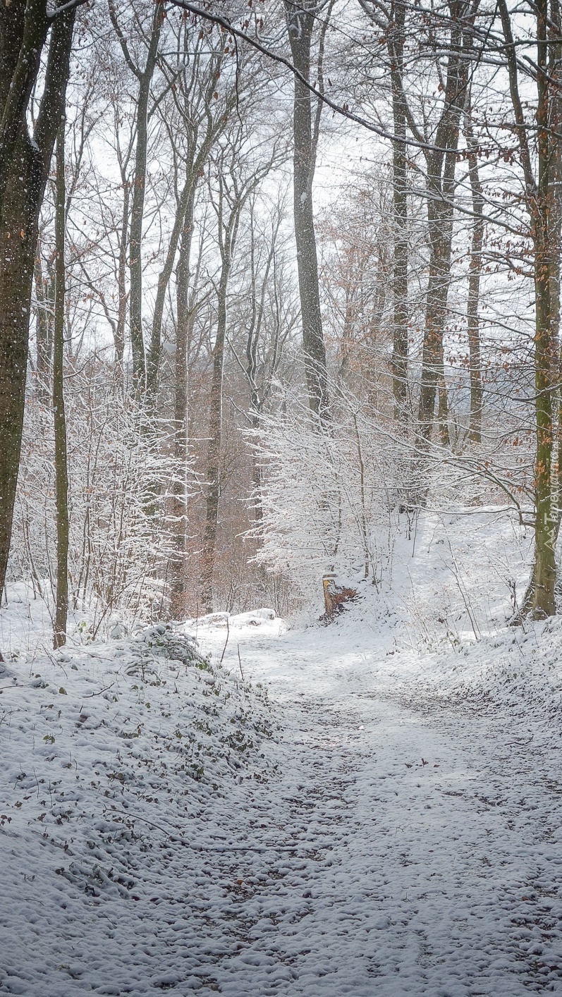 Edytor tapety: Ośnieżona ścieżka w lesie