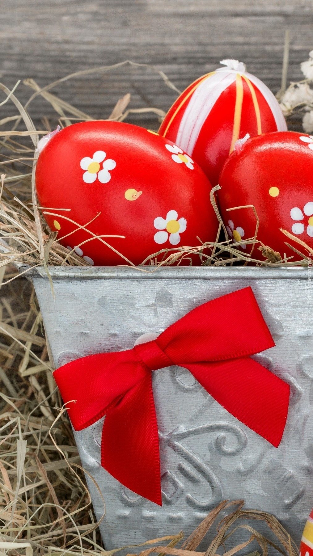 Edytor tapety: Czerwone pisanki w cynowej misce