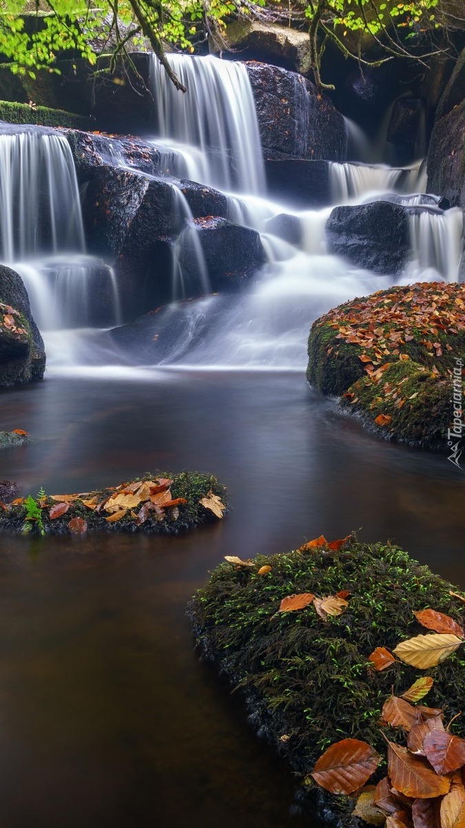Edytor tapety: Omszałe kamienie pod wodospadem