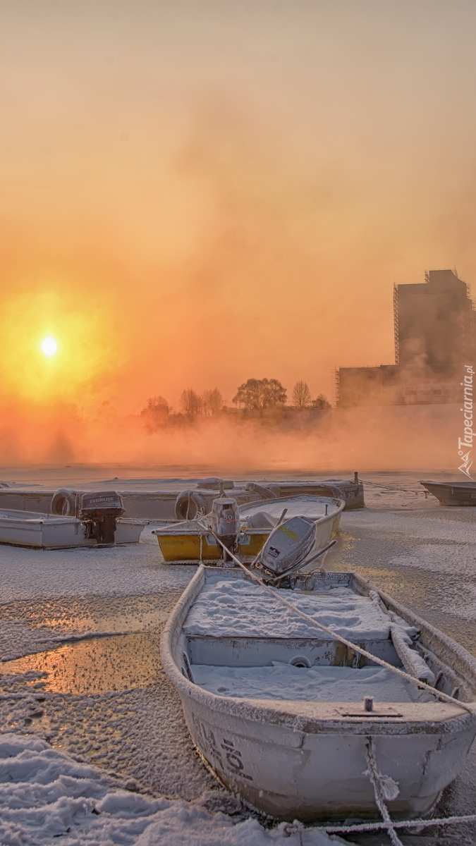 Edytor tapety: Ośnieżona łódka