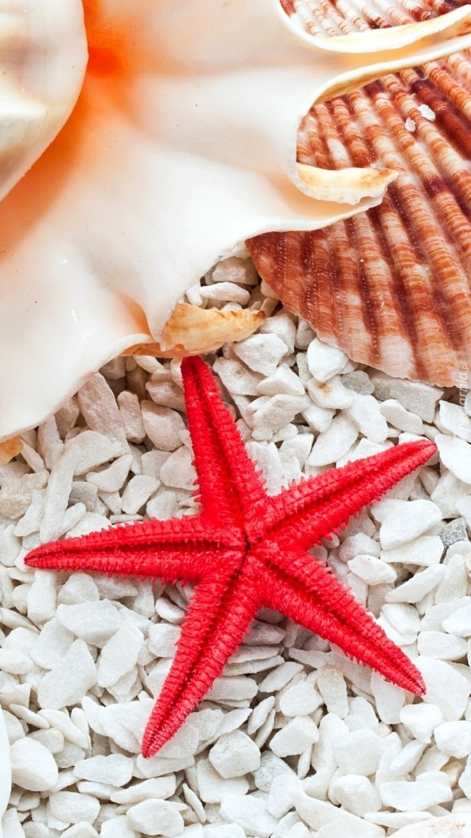 Edytor tapety: Czerwona rozgwiazda obok muszelek