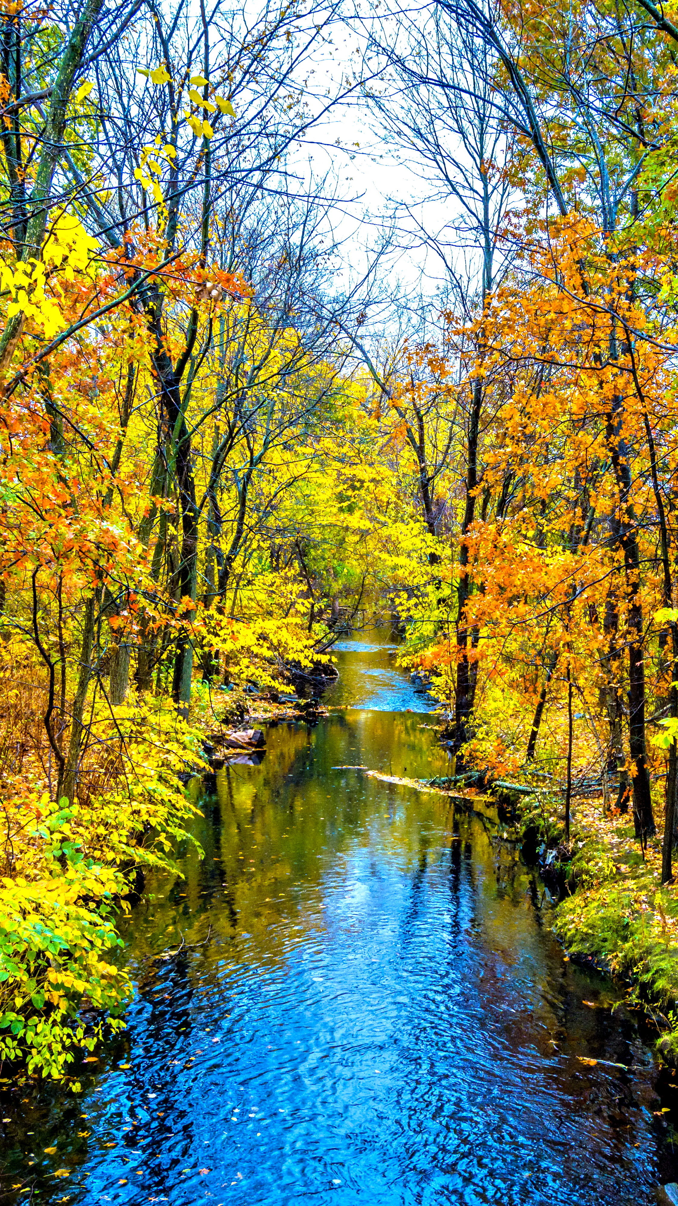 Edytor tapety: Kolorowe drzewa nad rzeką