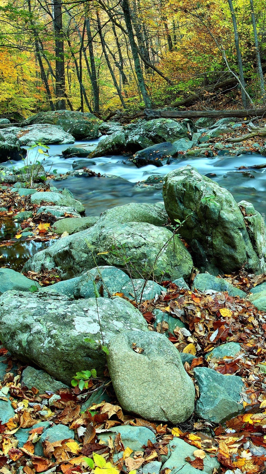 Edytor tapety: Las jesienią przy potoku