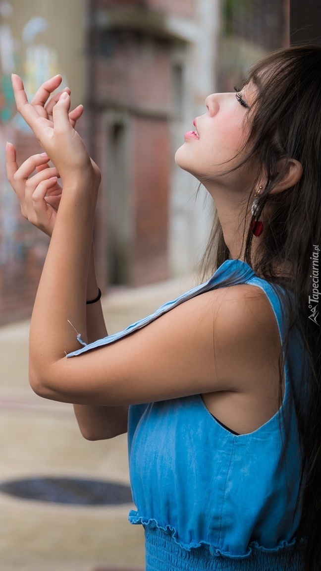 Edytor tapety: Szatynka w niebieskiej bluzce