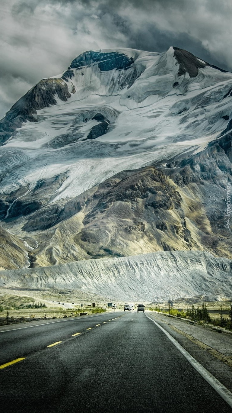 Edytor tapety: Droga w stronę zaśnieżonych gór