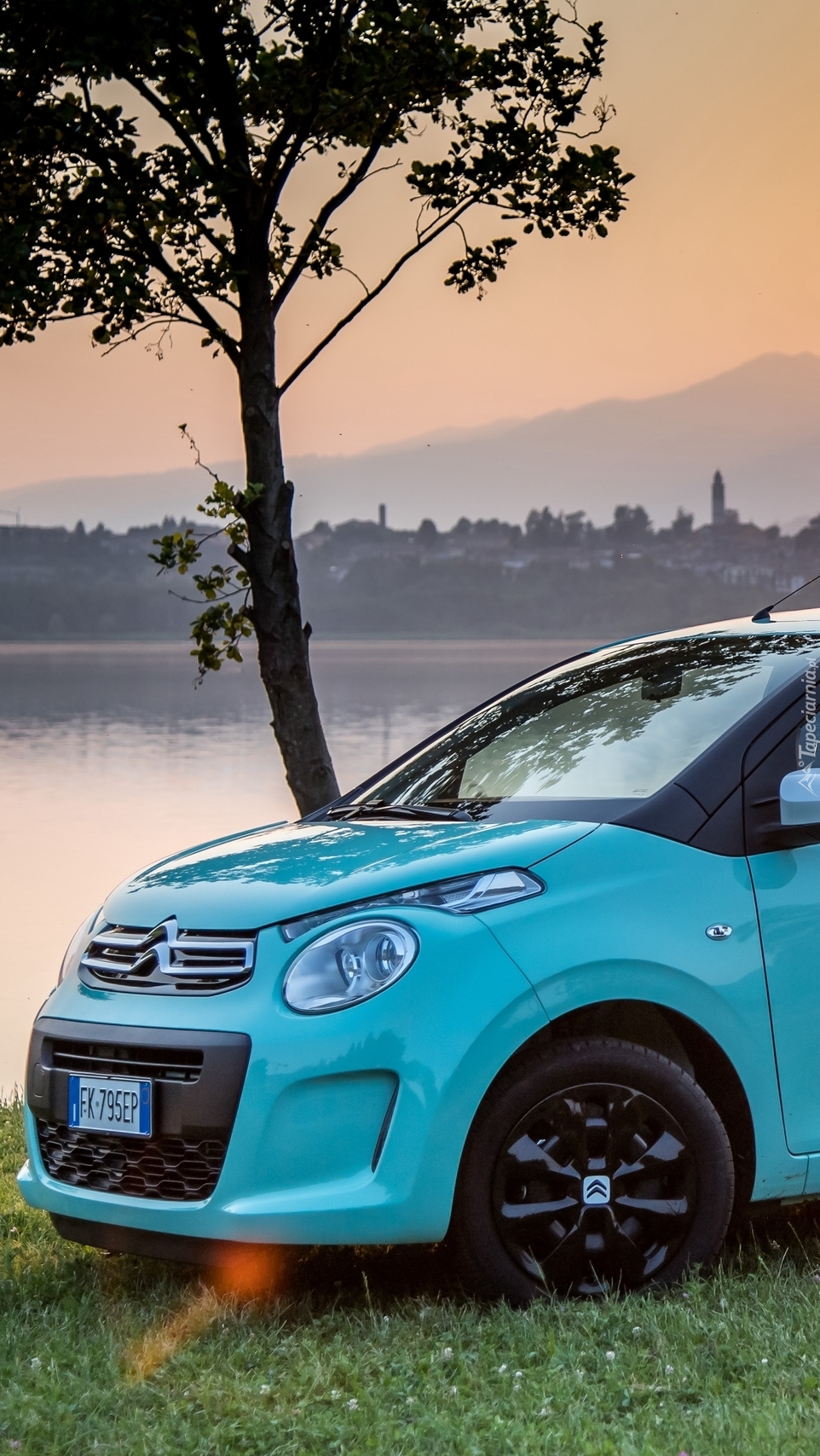 Edytor tapety: Niebieski Citroen nad jeziorem