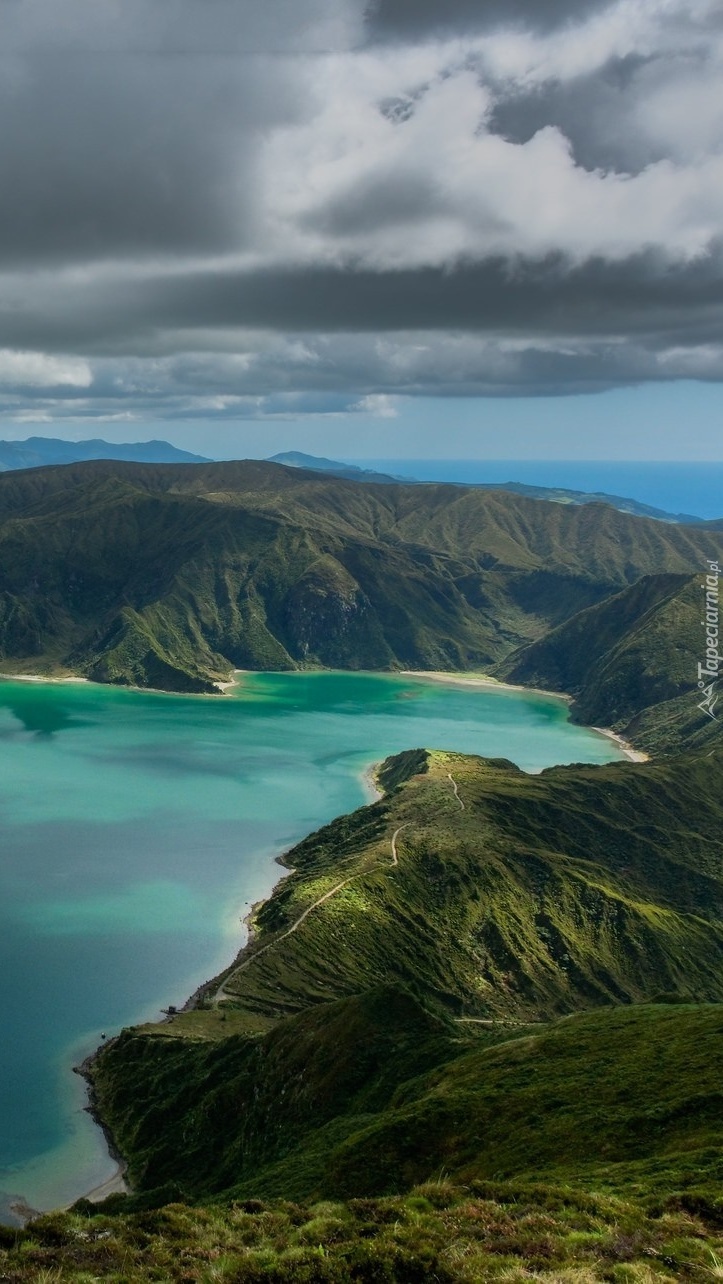 Edytor tapety: Chmury nad jeziorem i górami