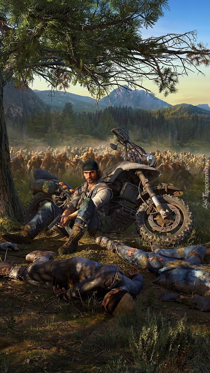Edytor tapety: Deacon St. John przy motocyklu
