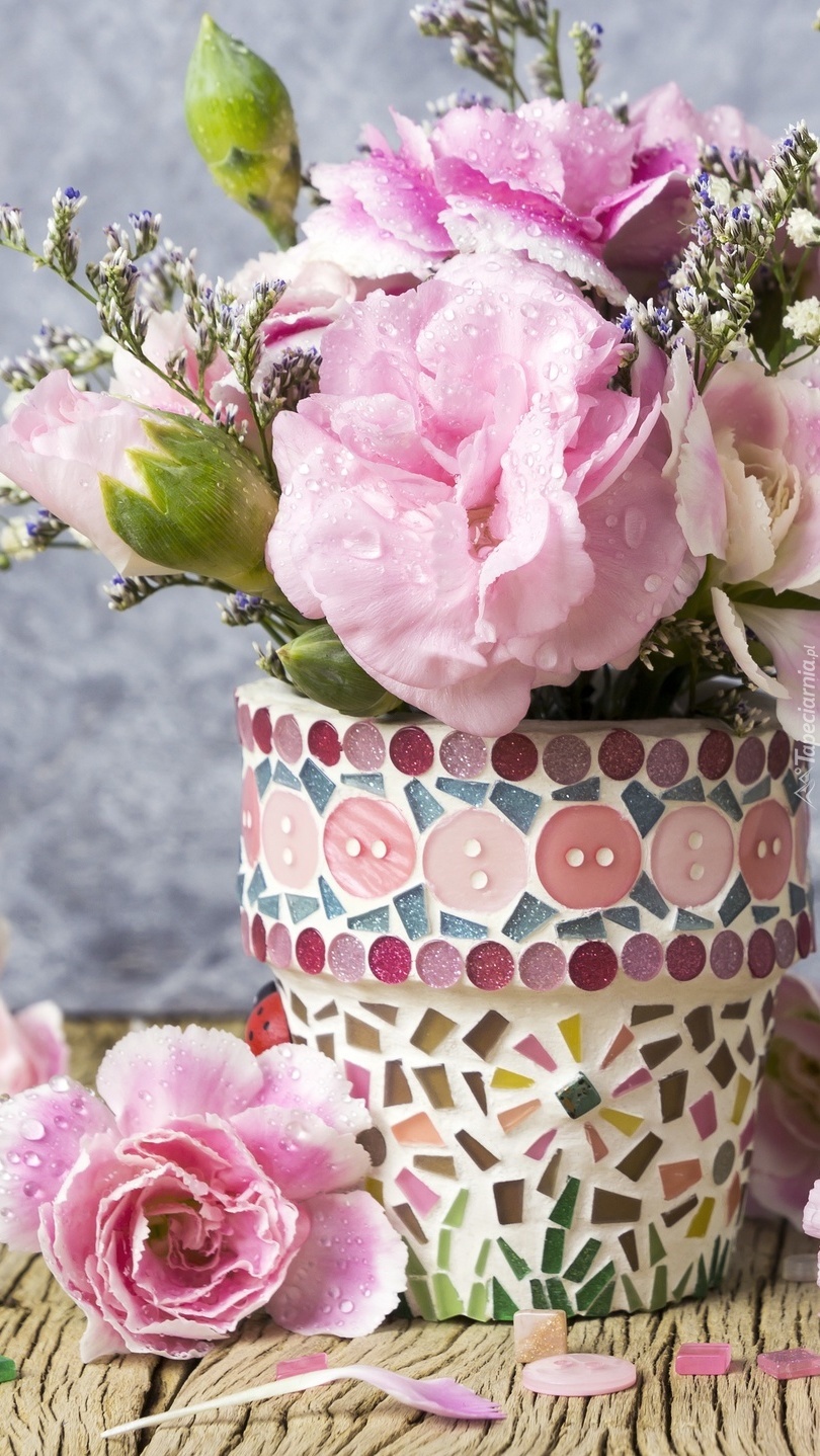 Edytor tapety: Bukiet goździków w ozdobnej donicy