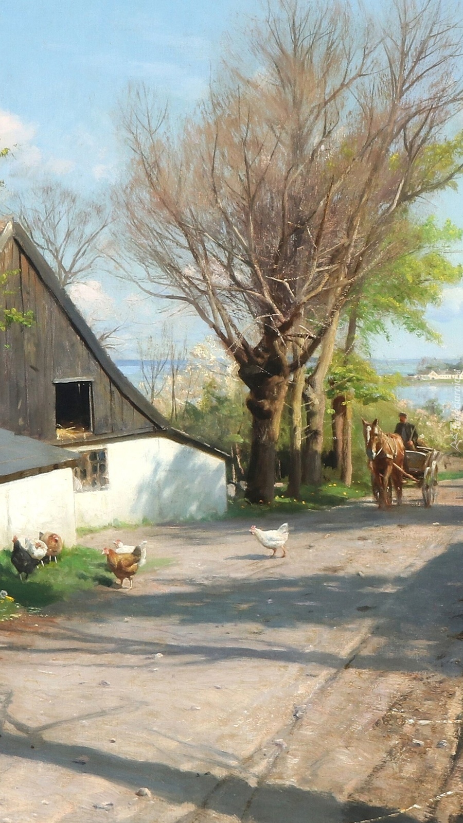 Edytor tapety: Pejzaż wiejski z wozem i koniem
