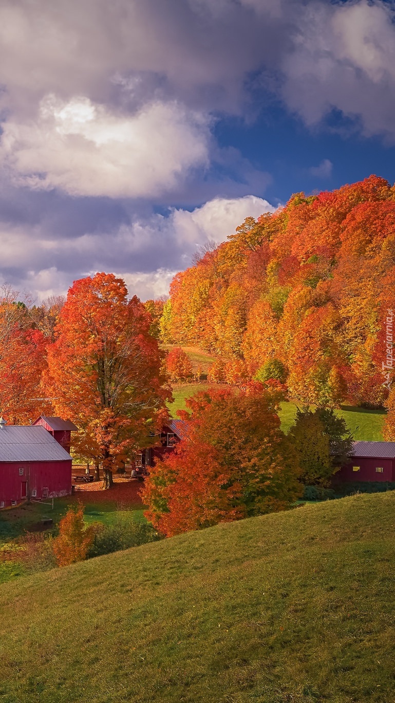 Edytor tapety: Domy pod jesiennymi drzewami