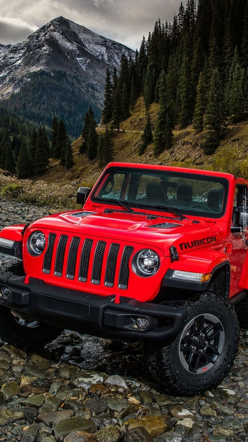 Edytor tapety: Czerwony Jeep Wrangler Rubicon