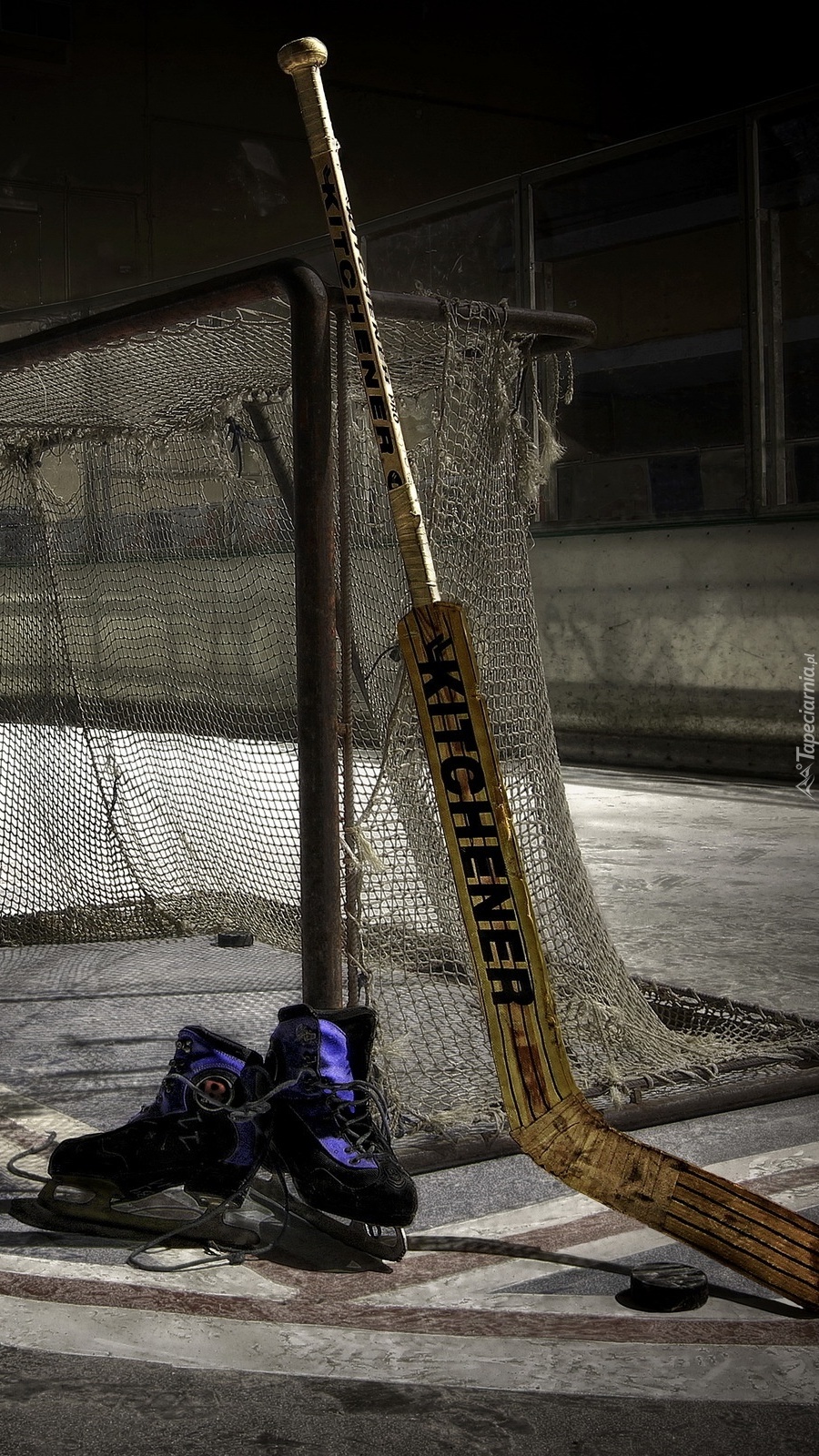 Edytor tapety: Kij z łyżwami przy bramce