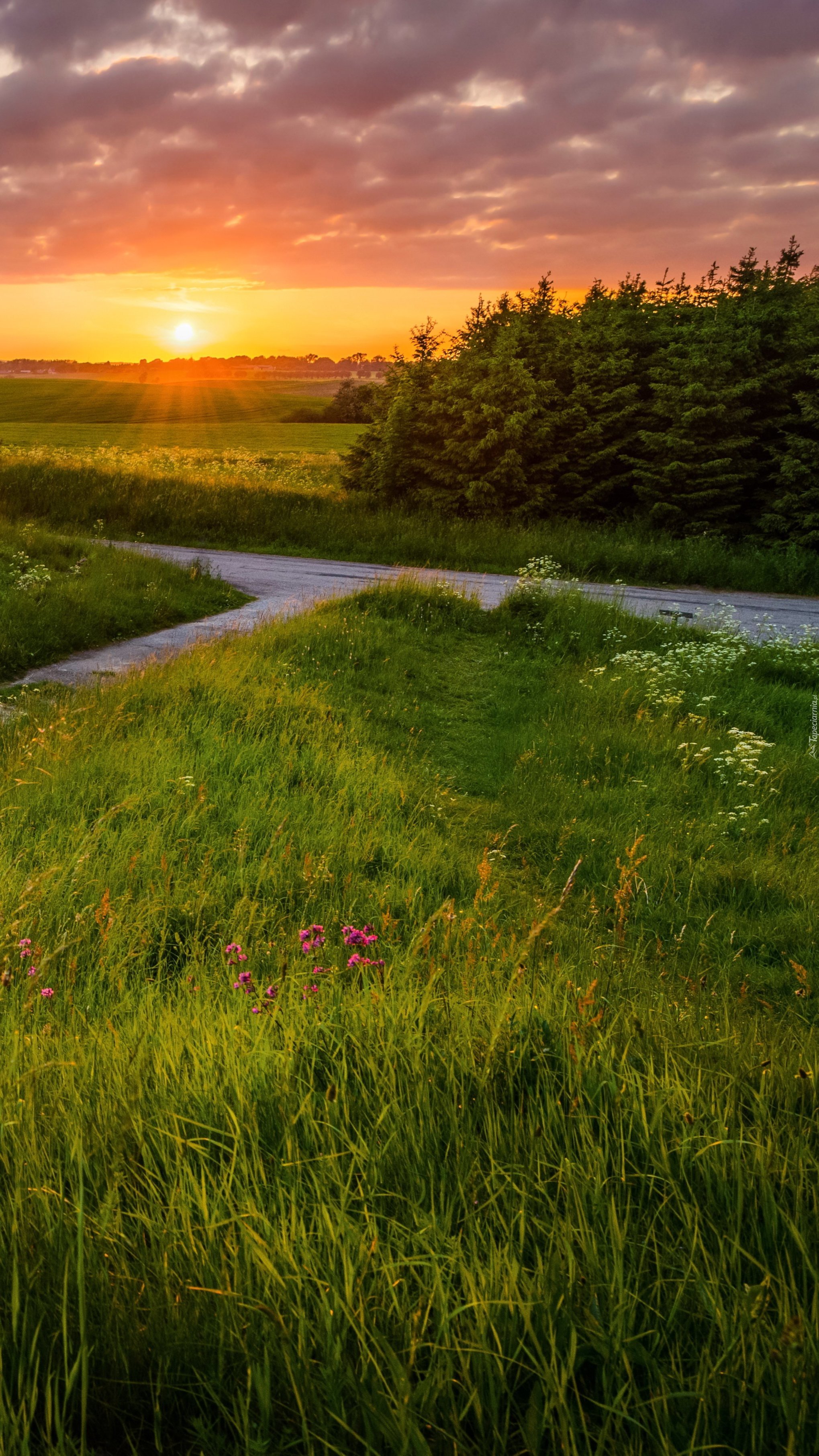 Edytor tapety: Łąki i droga w promieniach słońca