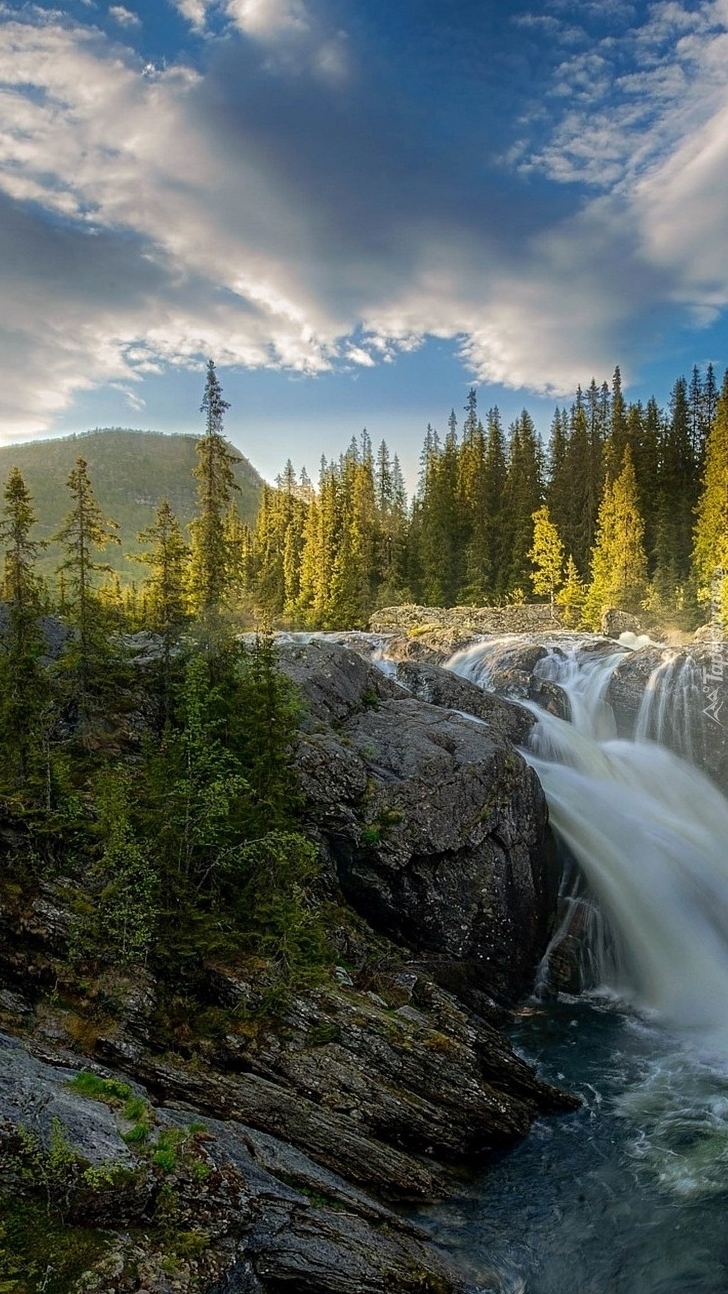 Edytor tapety: Wodospad między skałami