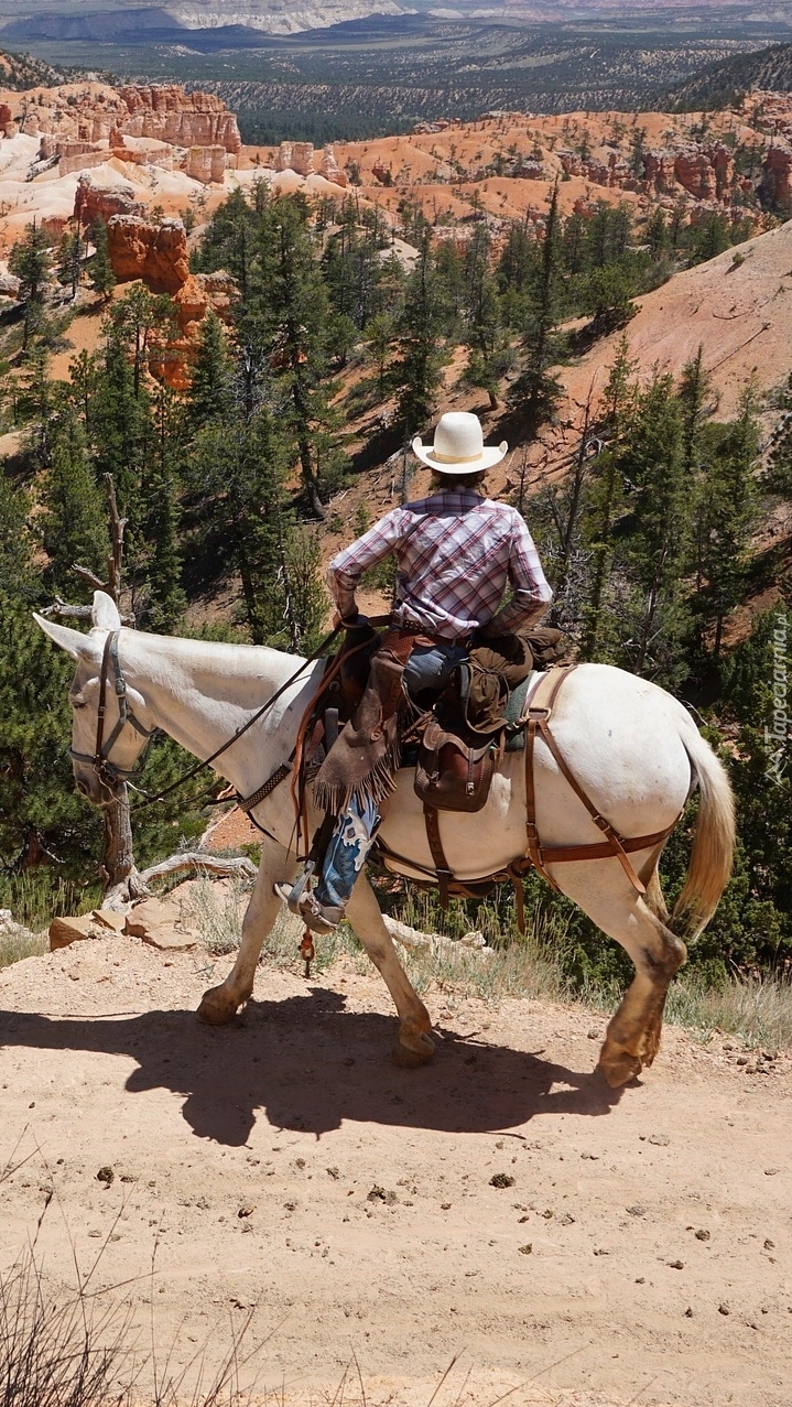 Edytor tapety: Kowboj na koniu w górach