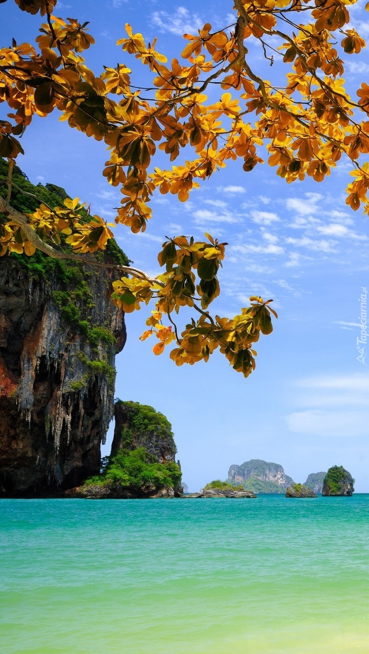 Edytor tapety: Wysokie skały na brzegu morza