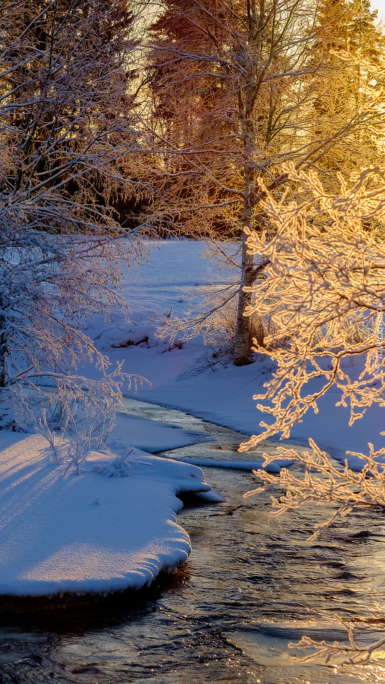 Edytor tapety: Ośnieżone drzewa o wschodzie słońca