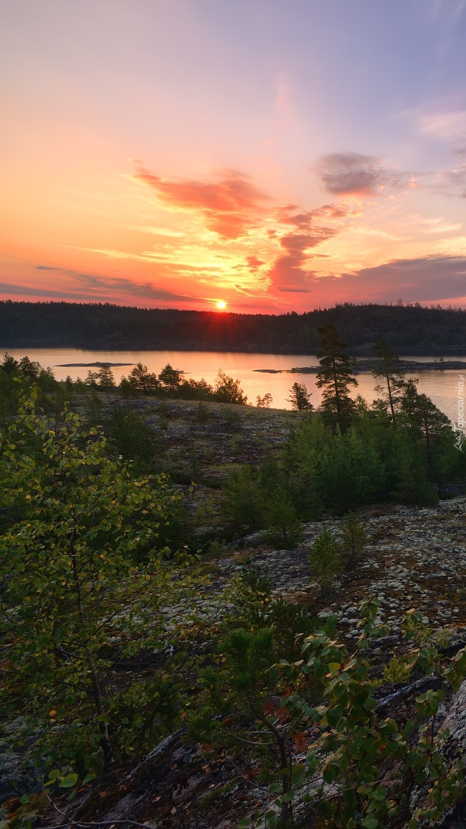 Edytor tapety: Zachód słońca nad jeziorem Ładoga