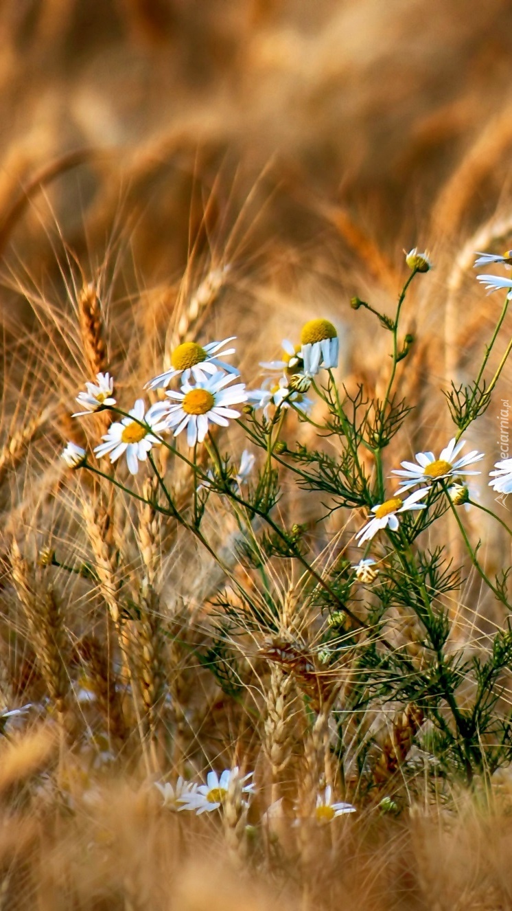 Edytor tapety: Rumianki w dojrzewającym zbożu