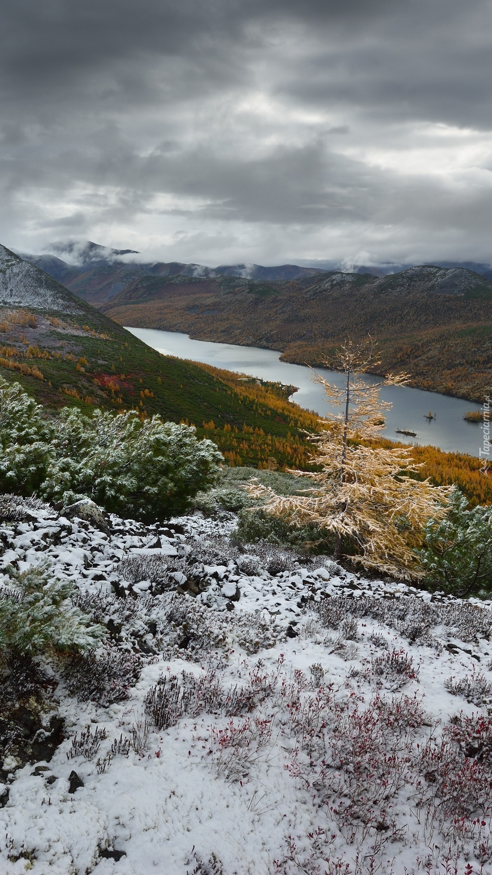 Edytor tapety: Widok ze wzgórz na jezioro