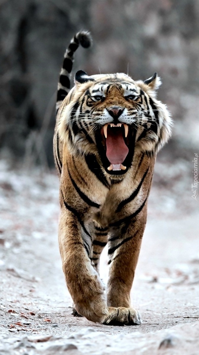 Edytor tapety: Wietrzenie zębów wściekłego tygrysa