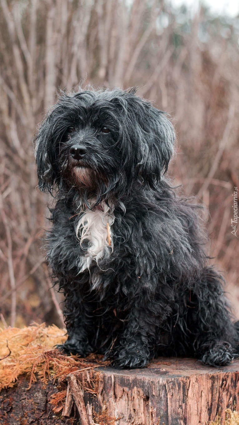 Edytor tapety: Kudłaty pies na pieńku