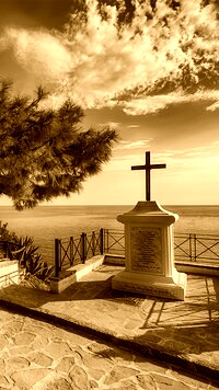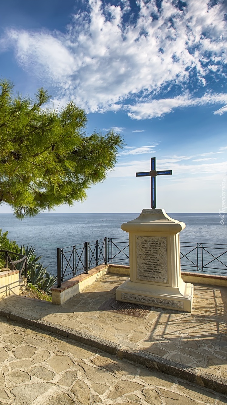Edytor tapety: Pomnik z krzyżem nad morzem