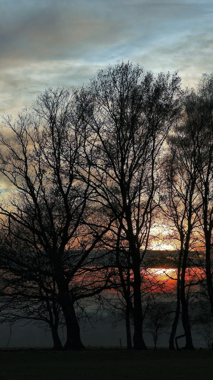 Edytor tapety: Drzewa na tle zachodzącego słońca