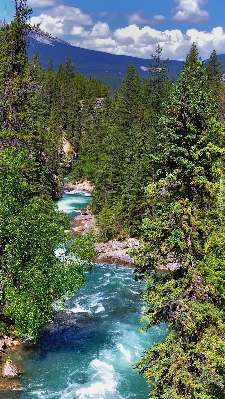 Edytor tapety: Rzeka płynąca pomiędzy drzewami