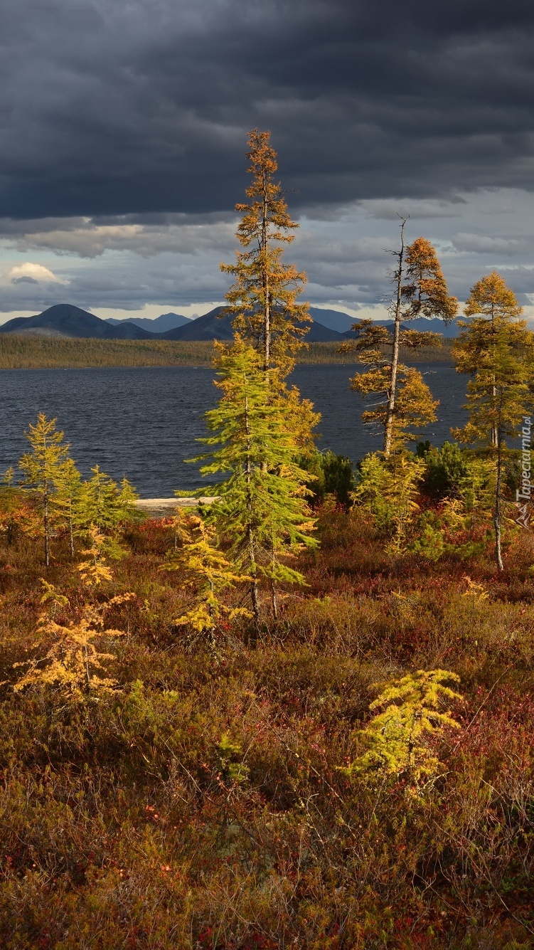 Edytor tapety: Drzewa nad jeziorem Jack London