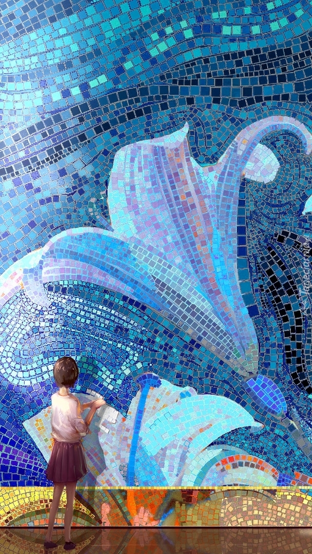 Edytor tapety: Dziewczynka przy mozaikowej lilii